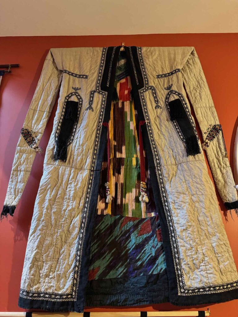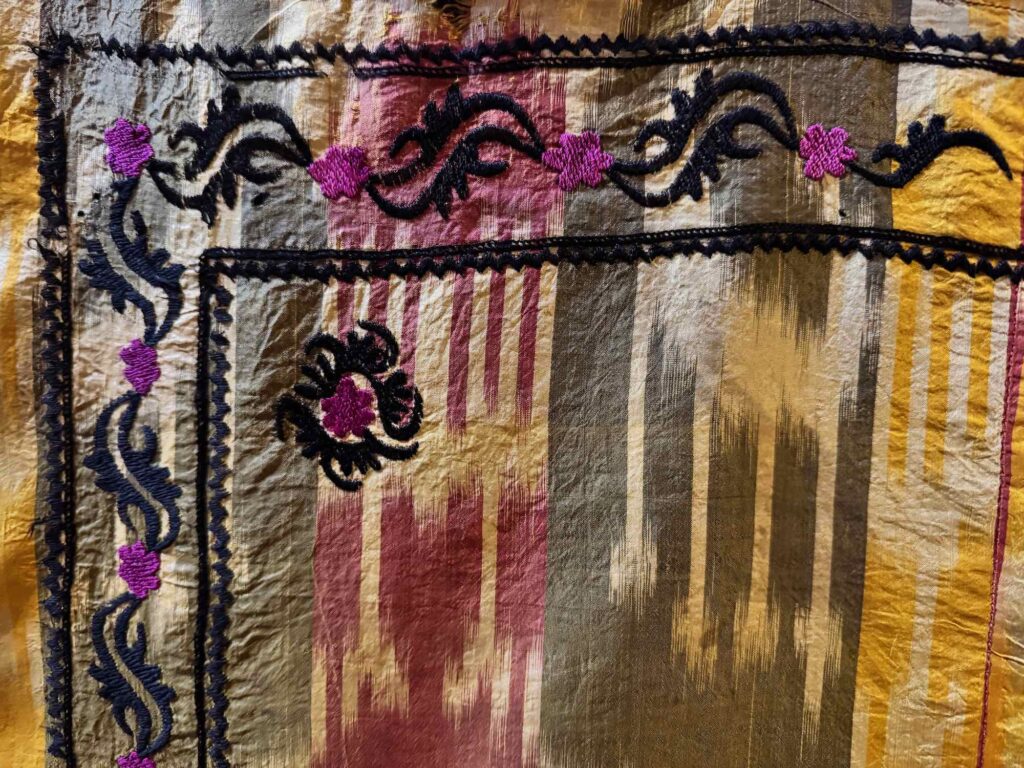 October 3, 2025 Kashgar, Xinjiang Province, China – Antique Atlas silk A very old cloth made from 3 sections of Atlas silk, with embroidered corners Detail of ikat Detail of embroidered corners ~270 year old silk coat – it has been re-lined with newer Atlas silk (~1930??) Embroidery details Sleeve detail Like this:Like Loading...